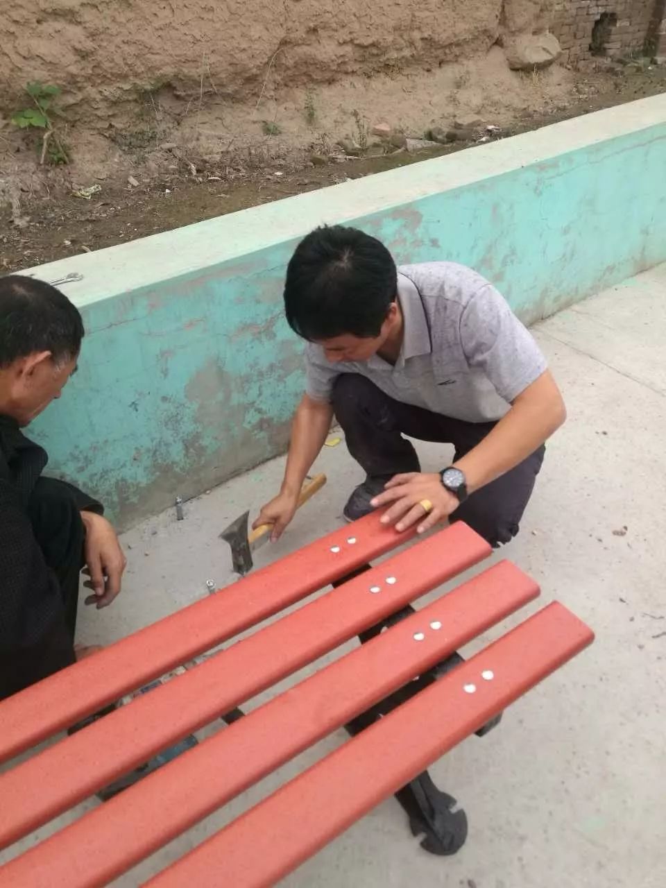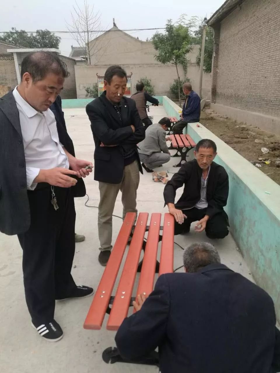 9月30日雖然天空還下著小雨,村委會(huì)相關(guān)領(lǐng)導(dǎo)、還有自發(fā)參與廣場(chǎng)休閑椅安裝的人們熱情高漲,絲毫沒(méi)有因?yàn)橄掠甓丝s堅(jiān)持冒雨施工,樊建武也和大家一起投身在安裝工作中,在國(guó)慶節(jié)前順利完成了東丁王文體廣場(chǎng)休閑椅安裝工作,看到漂亮美觀,結(jié)實(shí)耐用即將投入使用的休閑椅已經(jīng)安裝完畢,周?chē)鷩^的群眾鼓掌歡呼,紛紛伸出了大拇指贊賞這種艱苦創(chuàng)業(yè),心系家鄉(xiāng)建設(shè)的行為。